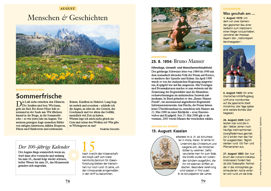 • ausführliches Monatskalendarium mit Namenstagen, Tageslesungen und Platz für Notizen