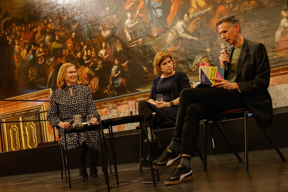 Im Gespräch mit Kathrin Karloff und Florian Traussnig, Bildungsreferent im Bildungsforum bei den Minoriten, erläuterte Brodnig mögliche Reaktionen, wenn der „innere Ruhepol“ fehle und man in einer eskalierenden Situation keinen klaren Kopf bewahren könne. Hinsichtlich der zukünftigen Auswirkungen, mit denen wir durch die Flutung unserer Gesellschaft mit Falschmeldungen in großem Stil schon jetzt konfrontiert sind, äußerte sich Brodnig besorgt, betonte aber die Bedeutung individueller Verantwortung: „Jede und jeder Einzelne von uns kann einen positiven Einfluss darauf ausüben, wie in unserer Gesellschaft miteinander gesprochen wird!“ Ko-Moderator Traussnig arbeitete in diesem Zusammenhang zwei hilfreiche Grundhaltungen bei (digitalen) Debatten heraus: weltanschauungsübergreifende Empathie und intellektuelle Demut.