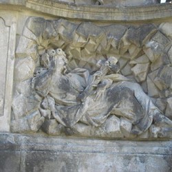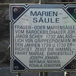 An der Rückseite der Mariensäule stehen zwei lateinische Inschriften, die man so übersetzen kann: