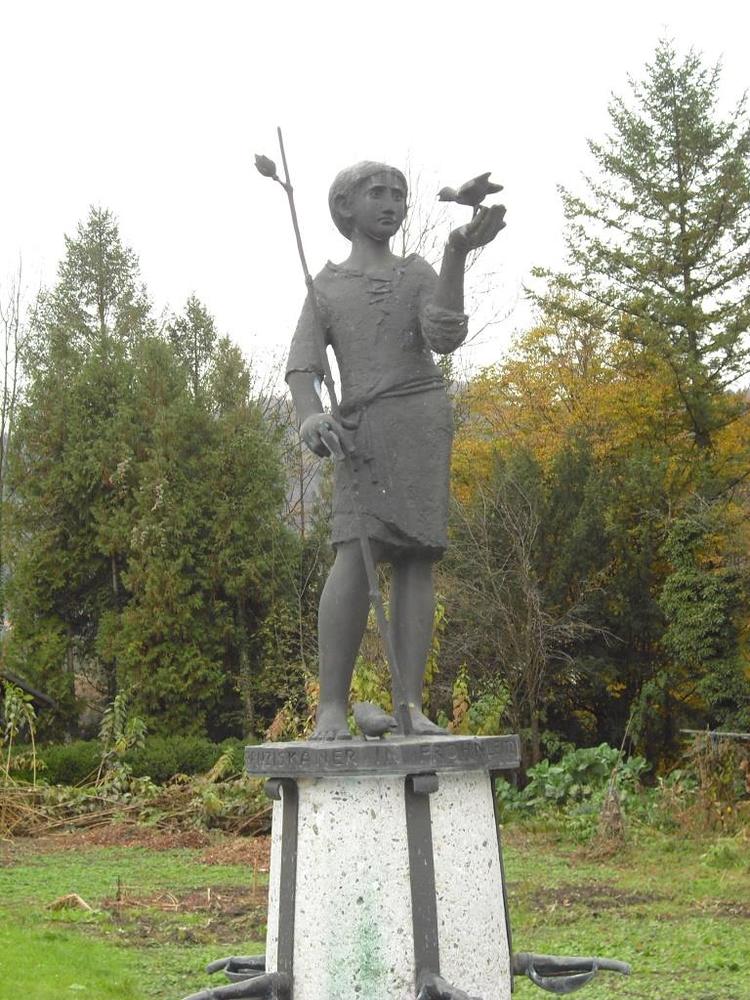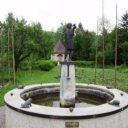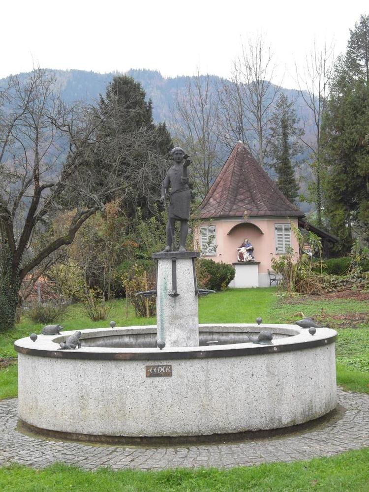 Der Franziskusbrunnen ist ein Kunstwerk unserer Zeit und dem Andenken des heiligen Franz von Assisi gewidmet. Der in der Zwischenzeit berühmt gewordene Akademische Maler Edwin Eder hat sich mit großem Engagement mehr als ein Jahr mit diesem Werk beschäftigt. So entstand eine Bronzeplastik eines jugendlich-revolutionär anmutenden Franziskus im Gespräch mit einem Vogel. Die Vogelpredigt ist eine bekannte Erzählung aus dem Leben des Heiligen, der bekanntlich ein großer Natur- und Tierfreund war. Unter den fünf am Brunnenrand postierten Tieren befindet sich auch ein durch Ölschlamm verendeter Schwimmvogel. Fünf kleine Weltkugeln, die das Tier-Pentagon am Brunnenrand unterteilen, zeigen auf jedem der fünf Kontinente einen Krater. Wunden, aus denen die Welt blutet. So entstand eine der wichtigsten plastischen Arbeiten des heimischen Künstlers.