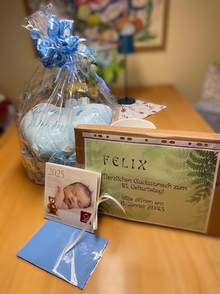 Hallo, ich heiße FELIX. Meine Mama Vicky ist Pastoralrätin (Verkündigung) in der Pfarre Tobelbad. Wir - Mama, Papa und ich - bekamen in der vorigen Woche Besuch von Gerlinde, Ines und Margret. Sie brachten Grüße vom Pastoralen Pfarrteam und von den Hauptamtlichen des Seelsorgeraums mit. Natürlich auch Geschenke. Fotos weiter unten!