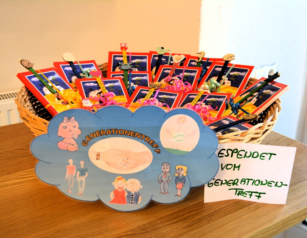Tanja Fassolter und Stefan Deutsch vom Generationentreff teilen Kinderbibeln an die Kinder aus, bevor sich alle bei Kaffee, Kuchen und Broten im BEGEGEGNUNGSzentrum stärken. Margret Hofmann, Pastorales Pfarrteam Liturgie und Öffentlichkeitsarbeit