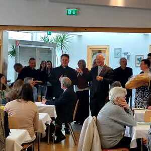 Im Anschluss an den Festgottesdienst waren alle Gäste, darunter auch zahlreiche aus Murau, zu einem gemeinsamen Essen in den Lazarussaal St. Oswald eingeladen. Über 100 Personen folgten dieser Einladung und nutzten die Gelegenheit zu persönlichen Begegnungen, Gesprächen und zum gemeinsamen Feiern. Die herzliche Atmosphäre zeigte die große Wertschätzung, die Vikar Solomes in der Pfarrgemeinde und darüber hinaus erfährt.