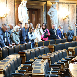 Ganz früh machte sich am 11. November 2023 ein voller 50er-Bus aus dem Seelsorgeraum auf den Weg nach Wien. Dort angekommen empfing uns der in unserem Seelsorgeraum wohnende Nationalratsabgeordnete Ernst Gödl. Er führte uns etwa zweieinhalb Stunden durch das im neuen Glanz erstrahlende, 140 Jahre alte österreichische Parlamentsgebäude und erklärte auch seine Aufgaben und Arbeitsweise als Nationalratsabgeordneter.